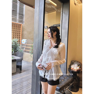 Áo sơ mi nữ mùa hè tơ phối ren bèo tiểu thư Cherine thiết kế by Twins
