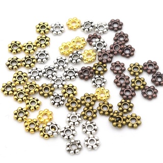 Set 100 Hạt Cườm Kim Loại Hình Hoa Cúc 6mm Dùng Làm Trang Sức Thủ Công