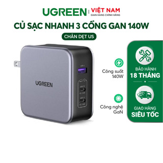 Củ sạc máy tính/ điện thoại, sạc nhanh UGREEN 140W CD289 adapter Nexode|GaN|3 cổng USB PD 3.1 QC 4.0 3.0 |BH 18 tháng