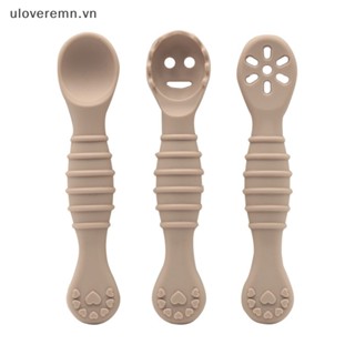 Bộ Muỗng Nĩa Bằng Silicon Mềm Tay Cầm Ngắn Dành Cho Bé Tập Ăn