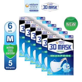 Bộ 6 Khẩu trang Unicharm 3D Mask High Block siêu bảo vệ size M gói 5 miếng