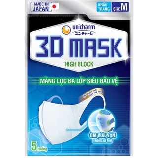 Khẩu trang Unicharm 3D Mask High Block siêu bảo vệ size M gói 5 miếng