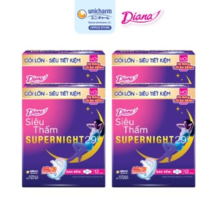 Bộ 4 gói băng vệ sinh Diana siêu thấm Supernight 29cm 12 miếng/gói