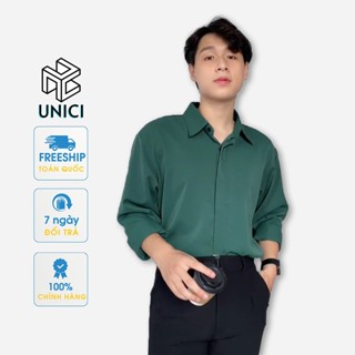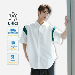 Áo sơ mi nam nữ tay ngắn họa tiết dáng rộng vải lụa cao cấp UNICI ASM46