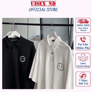 Áo Polo form rộng nam nữ in hình mặt cười, kiểu dáng unisex oversize, phong cách thời thượng, chất cotton cao cấp