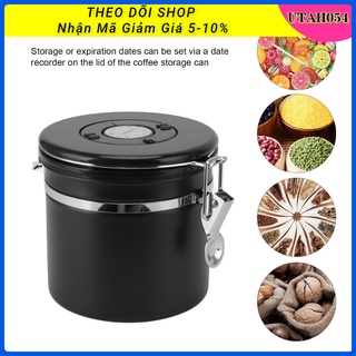Hàng Sẵn Hộp đựng cà phê chuyên dụng 1.2L bằng thép không gỉ Niêm phong có theo dõi ngày lưu kèm muỗng định lượng【Utah054】
