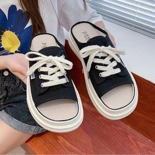 Giày thể thao nữ hở mũi chân vải Canvas đẹp, giày sục nữ cách điệu dáng thể thao đễ độn 3cm