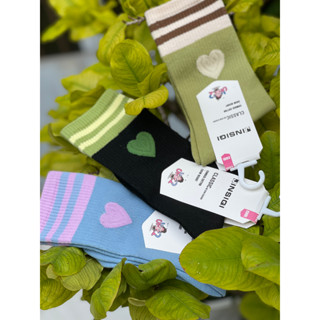 Vớ tất Ullzang cổ cao màu pastel sọc hình tim phối 2 cổ