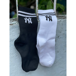 Tất cổ cao NY 2 SỌC trơn chất cotton cao cấp khử mùi thoáng khí unisex 2 màu đen trắng