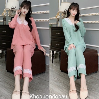 Bộ đồ dài tay chất đũi siêu xinh cổ ren tiểu thư mặc bầu và sau sinh BD906