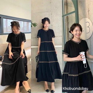 Váy bầu thiết kế dáng suông chất mango Hàn phối viền dây ren nổi sang trọng, lịch sự V345