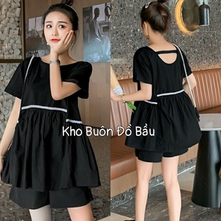 Bộ đồ bầu đùi kiểu dáng babydoll tiểu thư sang chảnh thiết kế viền xinh xắn BĐ867