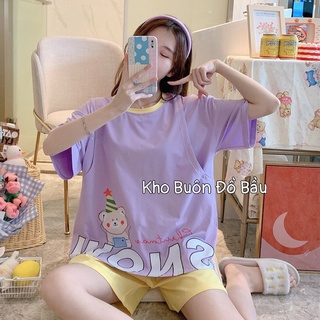 Đồ bộ bầu chất cotton cao cấp với họa tiết in hình dễ thương mặc bầu và sau sinh BĐ866