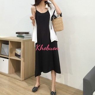 Váy 2 dây, đầm suông Nữ chất đũi lụa trơn basic ,dây quai tăng chỉnh (bầu bí bon chen ) V286