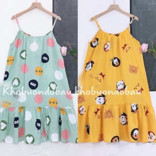 Váy ngủ 2 dây BÒ SỮA chất thun cotton siêu hót – Đầm ngủ mặc nhà dễ thương V291