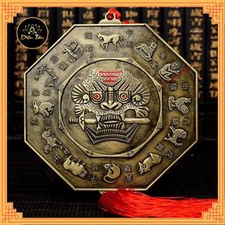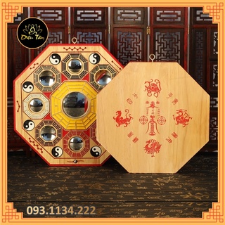 Gương bát quái hổ phù âm dương có dây treo tâm kết đỏ