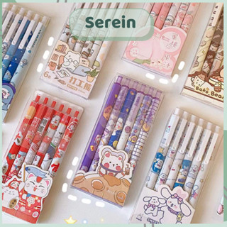 Set 6 bút bi hoạt hình cute SEREIN bút bi bấm mực gel 0.5mm văn phòng phẩm phong cách Hàn Quốc