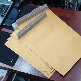 XẤP 10 CÁI Bao bì thư A4 giấy Kraft vàng có keo 2 mặt
