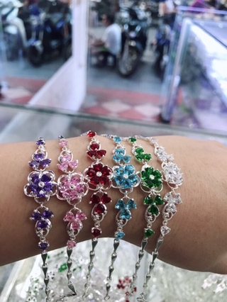 Lắc tay hoa nhiều màu đá nhân tạo bạc ta