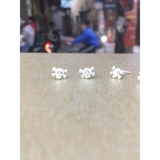 Khuyên tai hình đầu lâu xương chéo bạc thật NGỌC MẬU