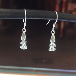 Khuyên tai móc thả 3 hạt đá đơn giản tinh tế bạc thật xi kim NGỌC MẬU giá xả kho