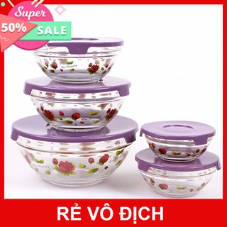 [Hot]-Bộ 5 Thố Thủy Tinh hoa có nắp Glass Bowl