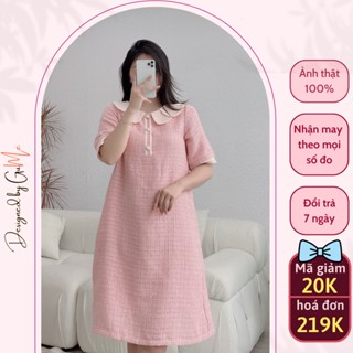 Váy bầu bigsize - Đầm bầu thiết kế GuMe DẠ TWEED HỒNG CAO CẤP dáng suông cộc tay- MB184, ẢNH THẬT