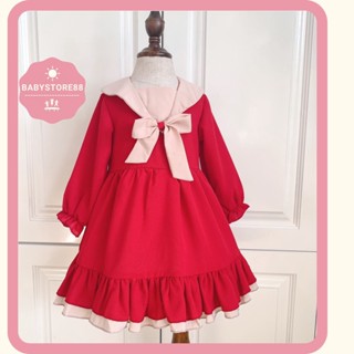 Váy đỏ tết cho bé gái thu đông BABYSTORE88, Đầm trẻ em dài tay hàng thiết kế 1 2 3 4 5 6 7 8 tuổi V5