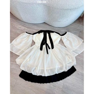 Sét áo kiểu nữ, cúp ngực nơ đen phối chân váy voan kính đen. Váy trắng dự tiệc.