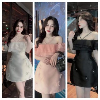 Đầm dự tiệc trễ vai phối bèo tơ nến 3 tầng công chúa dây đính đá. Váy dự tiệc sang trọng.