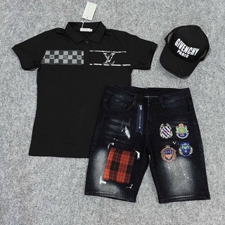 (Miễn ship) Áo thun nam ngắn tay cổ tròn xốp dập nổi thêu nổi L.V dày dặn co giãn tốt
