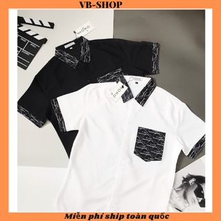 Áo sơ mi nam đen trắng tay ngắn in chữ hiệu 3D mẫu mới giá rẻ vải mặc mát cao cấp VBSHOP0010