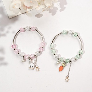 Vòng tay thỏ cà rốt gốm hạt xanh trắng quà tặng xinh xắn dễ thương