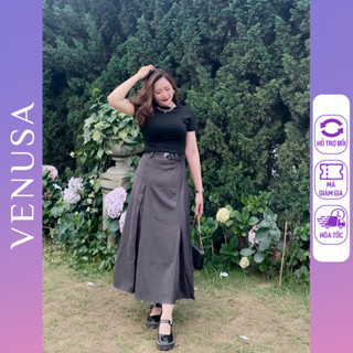 Set đồ nữ BIGSIZE basic chân váy dài kèm đai mix áo thun co giãn VENUSA STORE