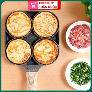 PVN31138 Chảo chiên trứng ốp la thiết kế 4 ngăn với tay cầm bằng gỗ tiện dụng T2 .