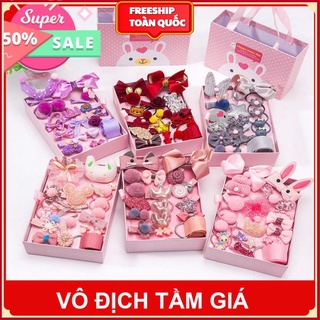 Hộp Phụ Kiện Nơ Kẹp Tóc Cho Bé ❤️RẺ VÔ ĐỊCH❤️ Hộp Dây Buộc Tóc 18 Chi Tiết Phong Cách Hàn Quốc Cho Bé Gái Siêu Xinh . .
