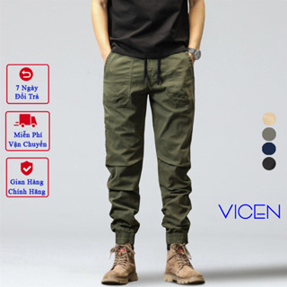 Quần Jogger Kaki Nam Cao Cấp VICENZO Túi Ốp Trước Vải Cotton Mềm Sau Khi Giặt, Quần Kaki Jogger Nam Cạp Chun Bo Gấu