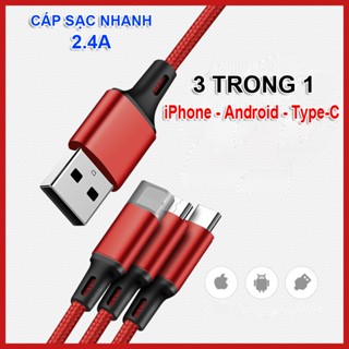 Cáp Sạc Nhanh đa năng dây dù Lynon 3 đầu,sạc được tất cả các dòng điện thoại (v9)