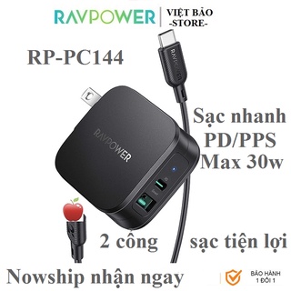 Bộ Củ Sạc 2 cổng 30w RAVPower RP-PC144 Cáp Type-C to MFI Sạc Nhanh ip,tablet táo