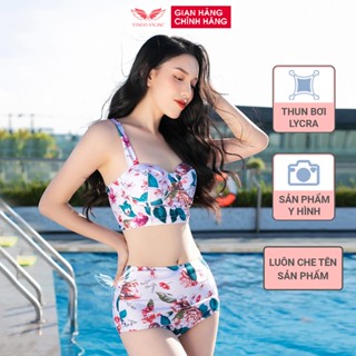 Set đồ bơi bikini nữ 2 mảnh đi biển mùa hè VINGO áo cup ngang có gọng nâng ngực quần bơi cạp cao che bụng mỡ B002 VNGO