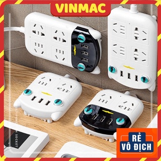 Ổ Cắm Điện Đa Năng Thông Minh Dán Tường Hình Mèo Cute 3 Cổng USB Chống Giật Cao Cấp Dây Dài 1.8m