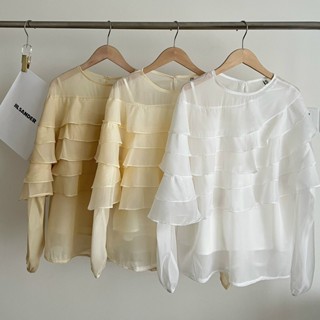 Áo sơ mi kiểu nữ, Áo sơ mi chất tơ phối bèo tầng lệch kèm áo 2 dây mặc trong xinh xắn