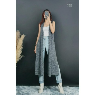 C1801 - Áo khoác dài sát nách, xẻ lai, dệt kim