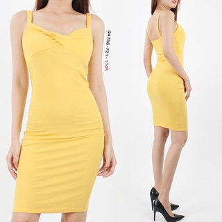 Q4766 - Đầm thun gân F21 2 dây, xoắn ngực, trơn