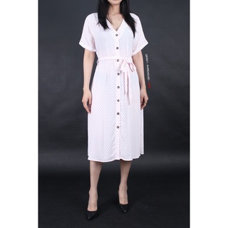 Q8961 - Đầm W4reHouse cổ tim tay ngắn nút trước cột nơ in hình lá