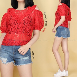 Q1193 - Áo ren ZAR4 cổ tròn tay phồng khoét vai cột nơ