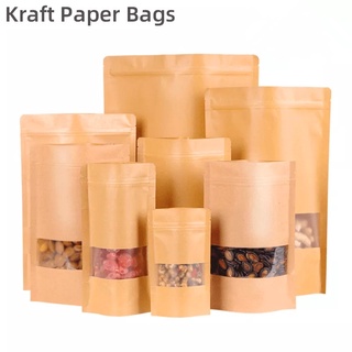Set 10 túi giấy kraft màu nâu có khóa kéo và cửa sổ trong suốt