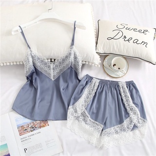 Bộ Đồ Ngủ Áo Hai Dây + Quần Short Chất Lụa Thời Trang Mùa Hè Quyến Rũ Cho Nữ
