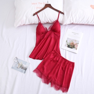Set Đồ Ngủ Vải Satin Phối Ren Thời Trang Quyến Rũ Cho Nữ