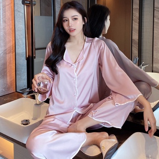 Bộ Đồ Ngủ Dài Tay Bằng Lụa Mỏng Thời Trang Mùa Thu Mới 2022 Dành Cho Nữ